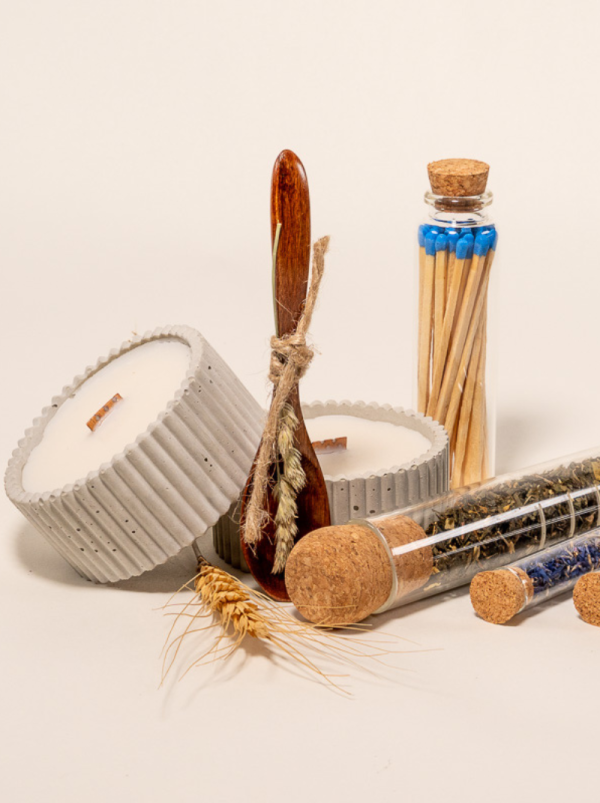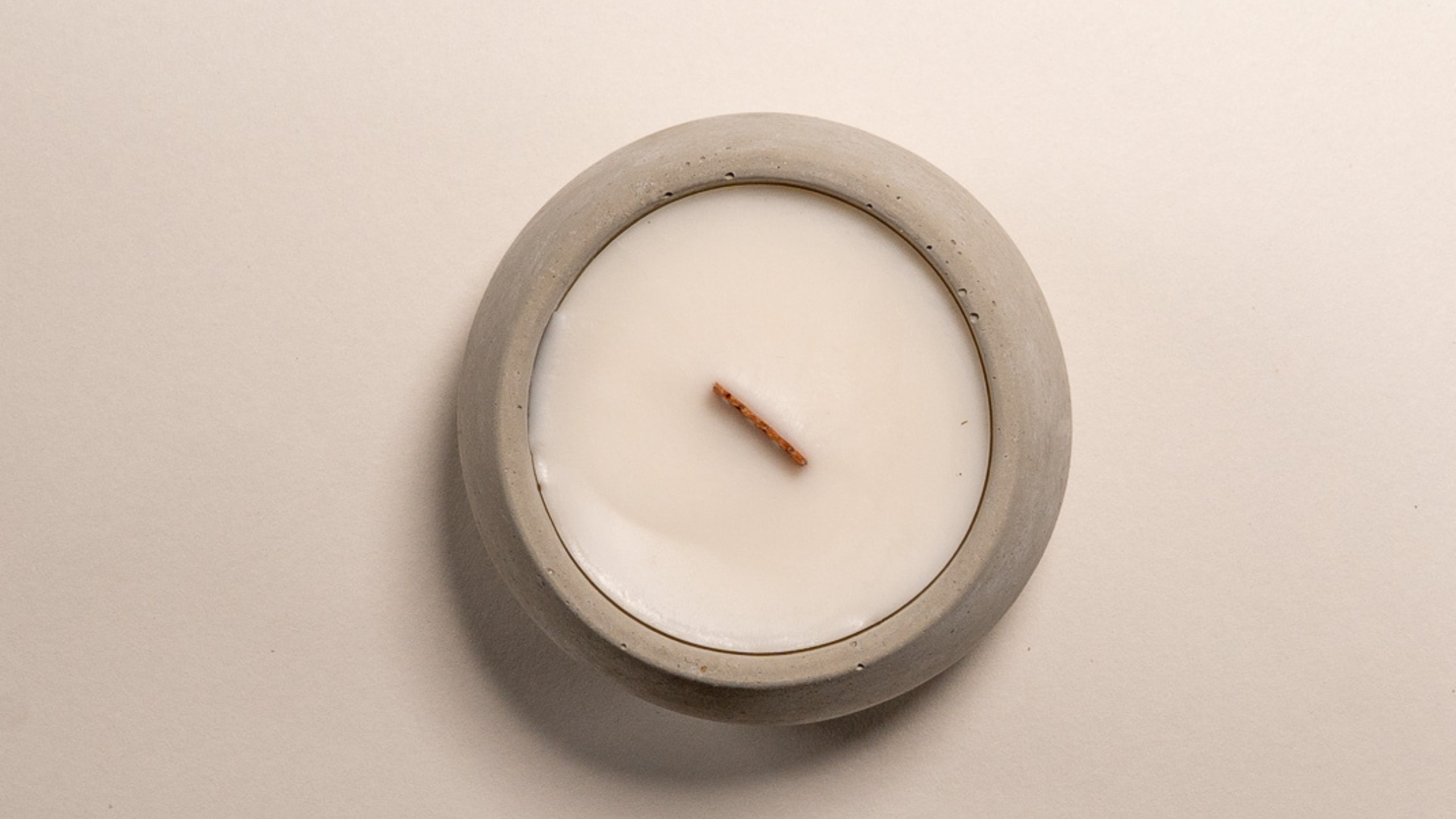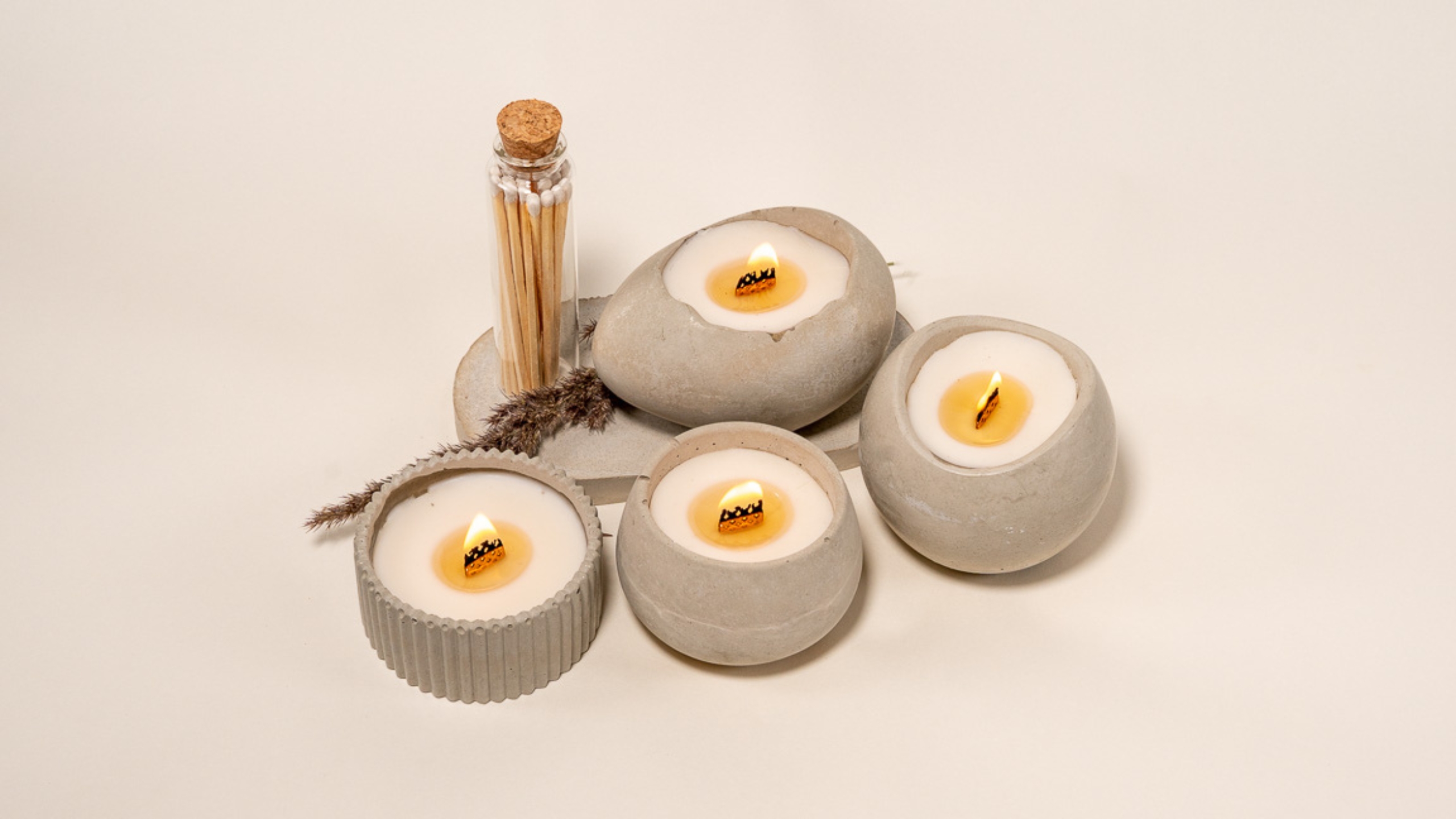 Minimalistyczny beton, wegański wosk, czyste spalanie. Każda sztuka jest unikatem.